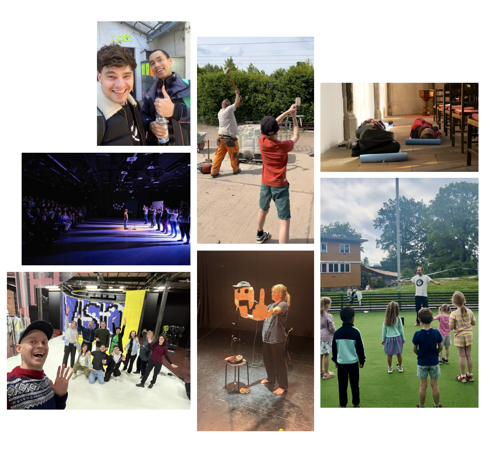 Working across linguistic and cultural contexts, we have started to create workshop and laboratory formats for children and teenagers. Since 2023, we have been creating and facilitating workshops together with Theater Magdeburg (as part of the BANDE program), Sånafest Hølen, Residenz Schauspiel Leipzig and Teater Kloden Oslo.